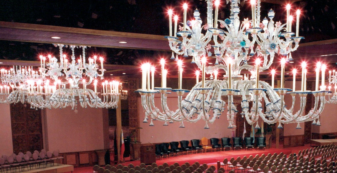 Custom Rezzonico chandeliers produced by Seguso for a theatre.