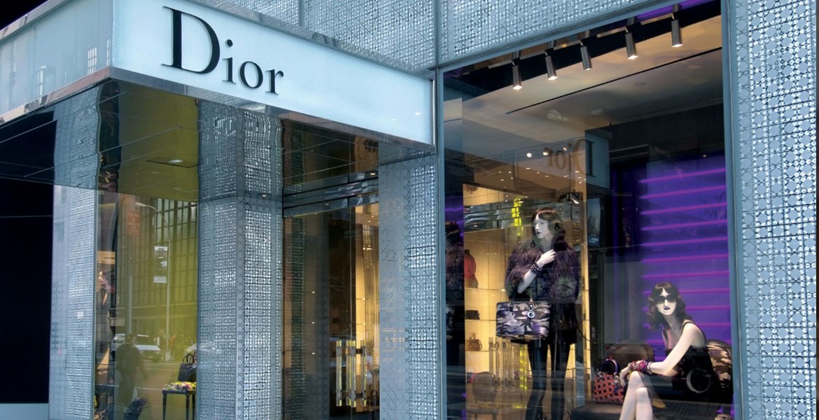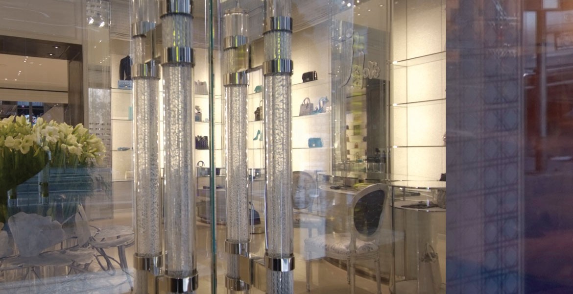 Detail of Seguso glass door handles at the entrance of the Christian Dior boutique that can be found worldwide, including stores in New York, London and Shanghai.
