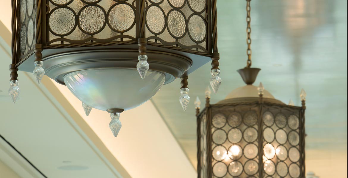 The most traditional of Venetian style lanterns is produced by Seguso using original Muranese techniques for a public area at a luxury resort.